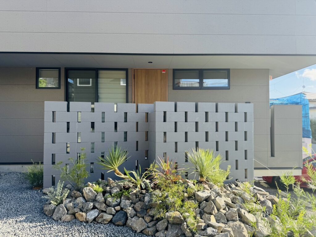 外構や庭のデザインは、住宅において単なる付加要素ではなく、暮らしを豊かにする大切な要素です。玄関へのアプローチや植栽の選定、石や素材の使い方によって、日々の生活に「景色」を取り込むことができます。今回の住宅でも、建物と庭の調和が、心地よい住まいの時間を形づくっています。